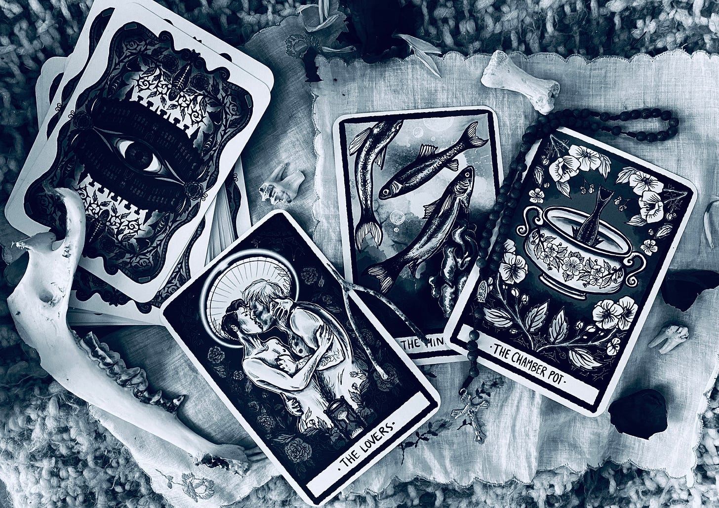 I had to go with a fairly pricey printing service because I did not want to sacrifice quality or detail, and it was important for me they remain 4 x 6 for printing and display purposes, a significantly larger size than your average tarot card! Essentially you are purchasing 44 beautiful 4 x 6 quality art prints, along with a book—I think it’s a steal.