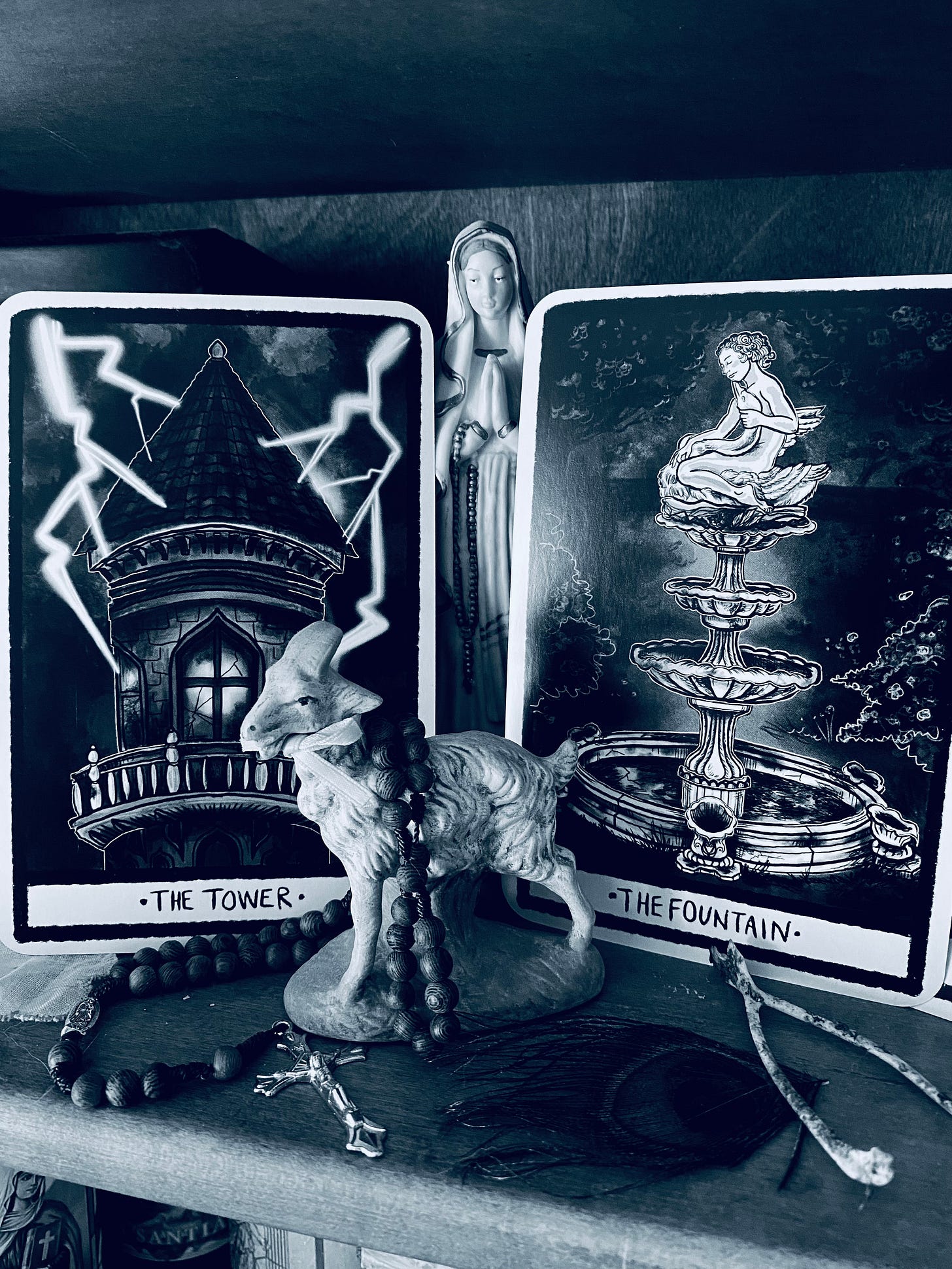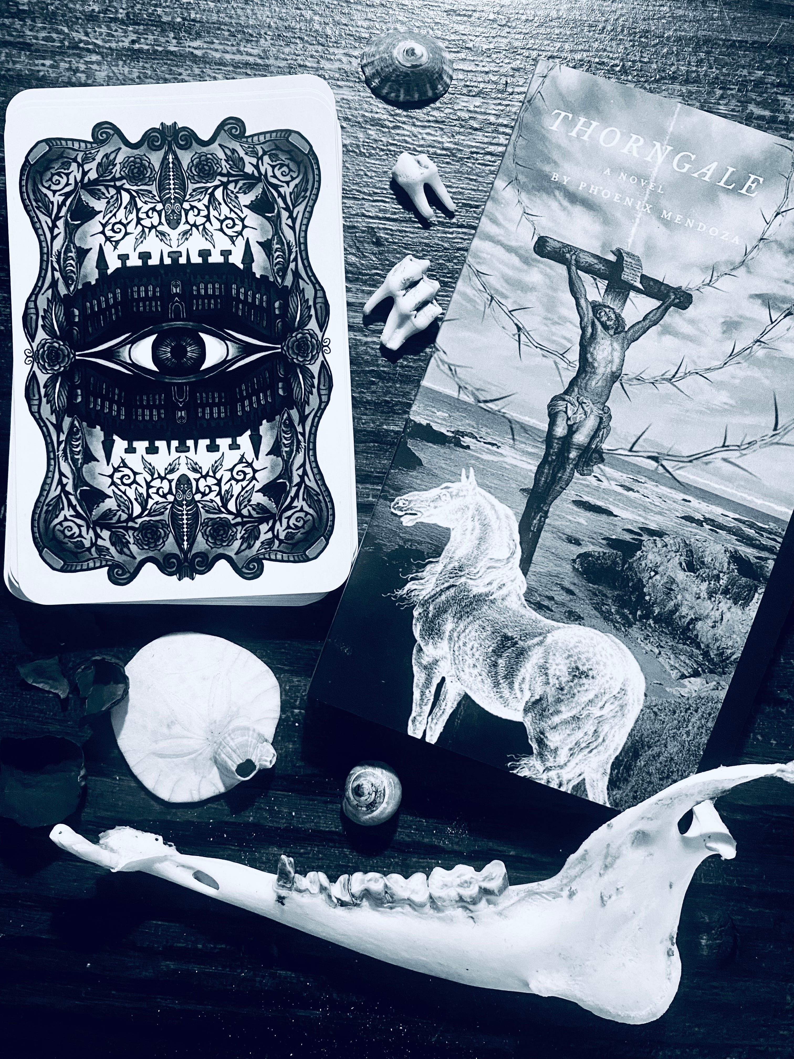 Some of the reward tiers on kickstarter have fun goodies included too, like digital downloads of Thorngale, my prior short fiction collections Salivation and Yellow Wallpapering, as well as custom stickers of the Oracle Deck art and some of the graphics I’ve made for Thorngale featuring my Cornwall photography.
